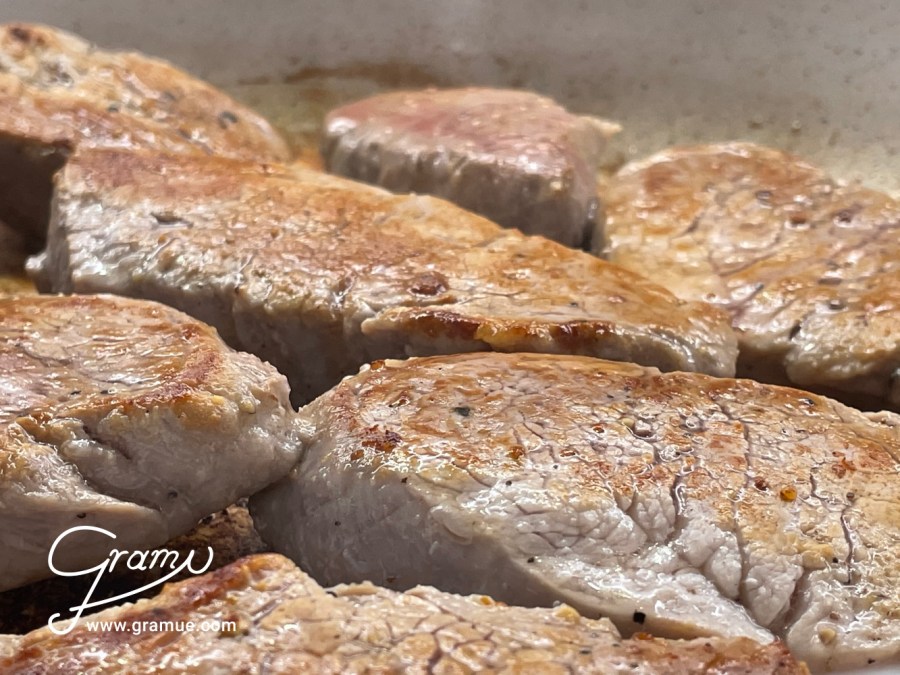 Schweinemedaillons mit Salz, Pfeffer und Knoblauchpulver würzen und in einer Pfanne mit 1KL Pflanzenöl scharf anbraten und im vorgeheizten Backrohr (100-120°C) warmstellen.