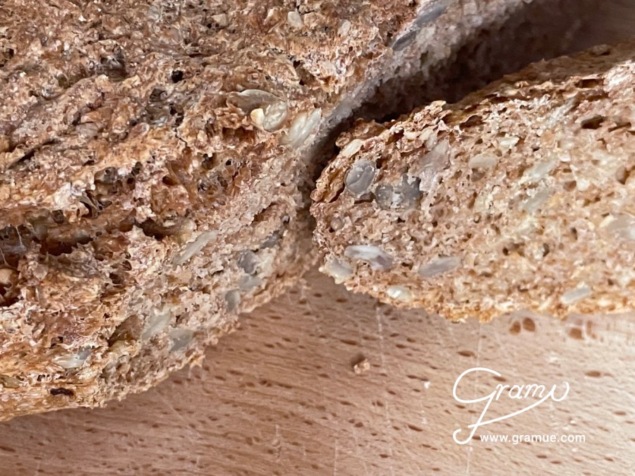 Gramue „light“ und auch noch X’sund – ein Vollkornbrot alla Gramue. Neben vielen Körndln kommen in dieses Brot noch Weizenkleie und ein Schuss echter Südtiroler Apfelessig. Damit wird dieses Brot leichter und besser verdaulich und bekommt eine tolle zusätzliche Geschmacksnote – alla Gramue eben 😉