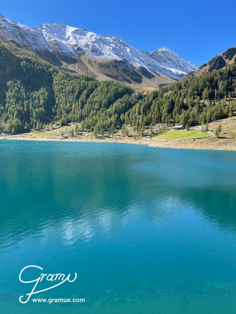 Der Neves-Stausee liegt sehr idyllisch in den südlichen Zillertaler Alpen. Der Parkplatz eignet sich auch als idealer Ausgangspunkt für Wanderungen zur Edelrauthütte bzw. der Chemnitzer Hütte. Für uns gab es aber lediglich eine Seeumrundung und die 3000er sowie die Edelrauthütte haben wir nur aus der Ferne gesehen. Verwöhnt wurden wir von strahlendem Sonnenschein und angenehmen Oktobertemperaturen und einer traumhaften Rundumsicht.