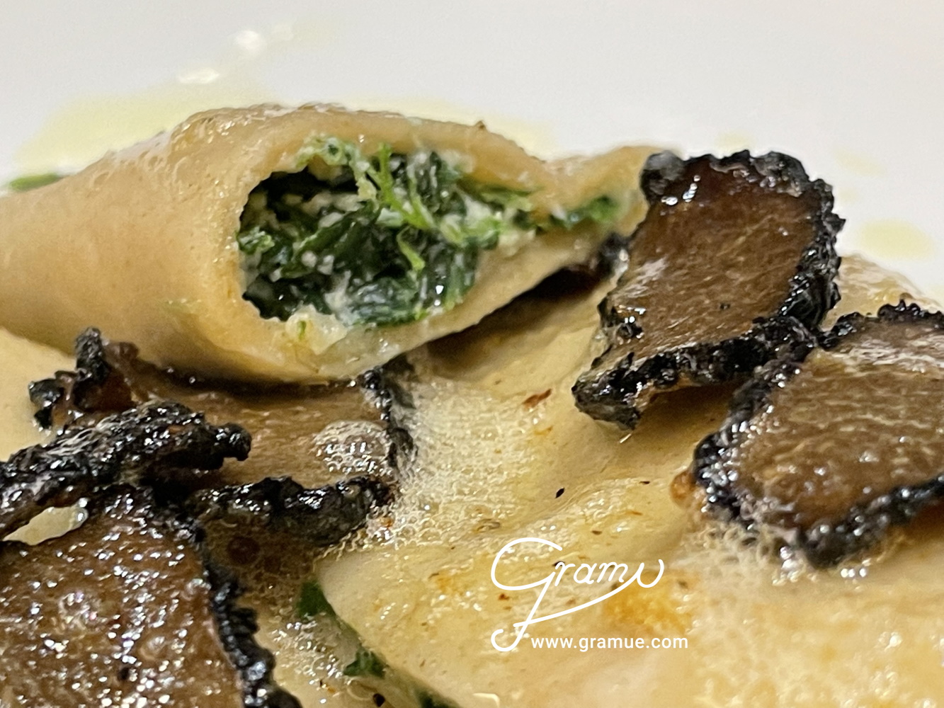 Gefüllt mit Spinat-Ricotta und mit gehobelten Trüffeln garniert – nach einer herbstlichen Motorradtour durch die nördlichen Dolomiten