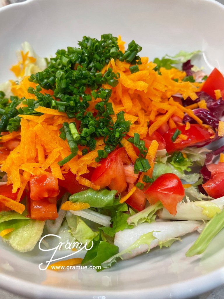 Und dazu gab es bei uns einen frischen gemischten Salat.