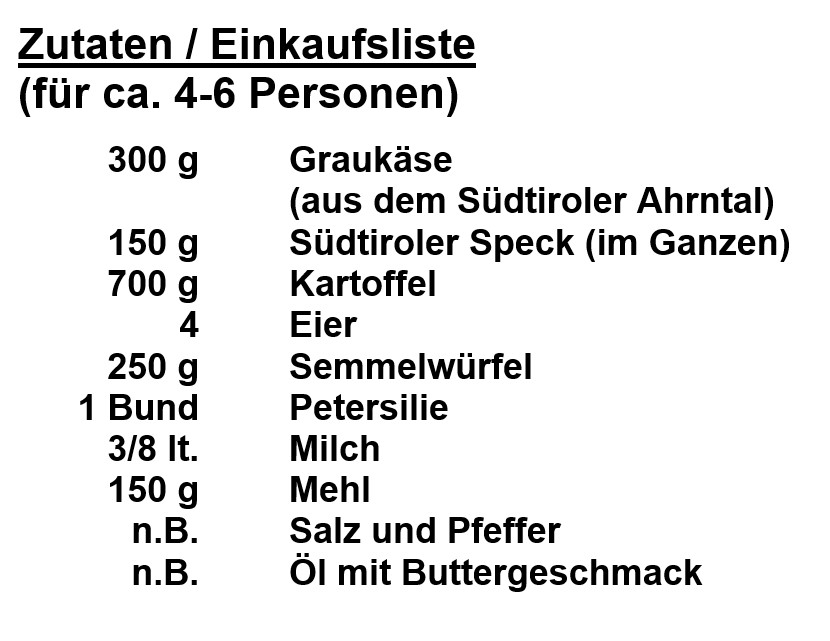 Besonderheit: würziger Südtiroler Graukäse aus Lappach und Südtiroler Speck