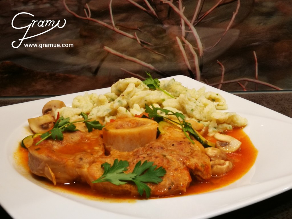 Ossobuco vom Kalb mit handgezupften Kräuternockerln