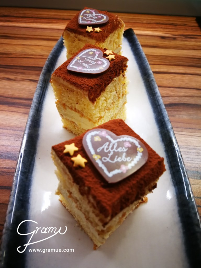 Danach in gewünschte Stücke schneiden und nach belieben Dekorieren.